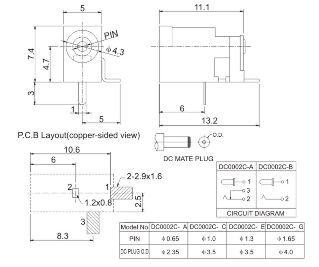 DC PIN size | 0.5mm/0.7mm/1.0mm/1.1mm/1.3mm /1.65mm,2.0mm/2.5mm/3.0mm |